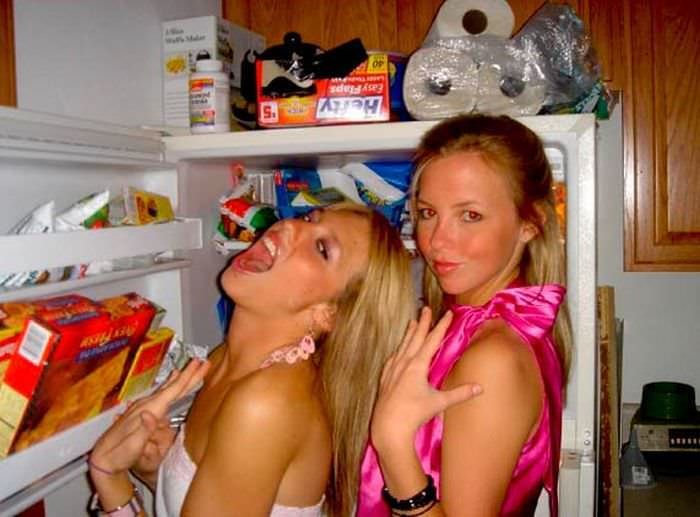 Знойные девушки раком у холодильника